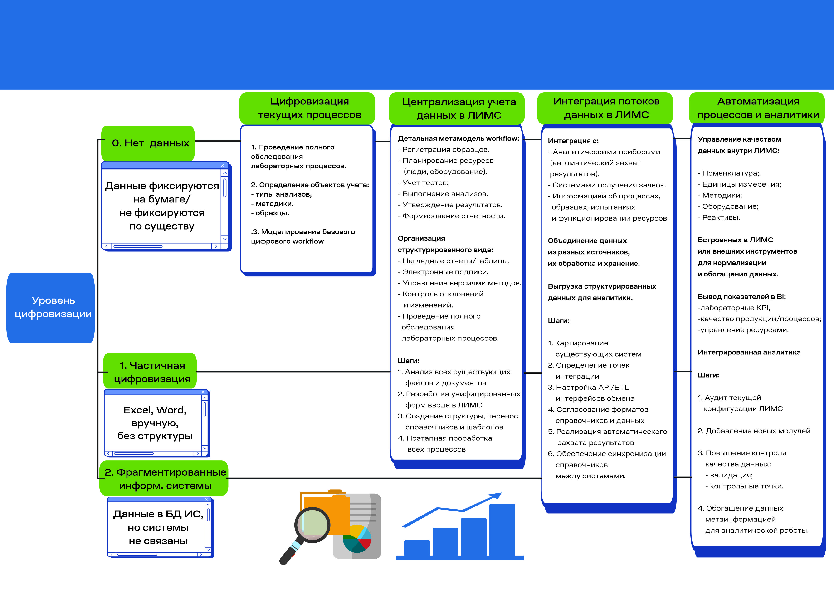 Экспертный аудит с вариантами цифровой трансформации на основе подходов «Best practices» в аналитике и разработке ЛИМС, модернизации компьютерного оборудования, моделирования интеграций с внешними системами